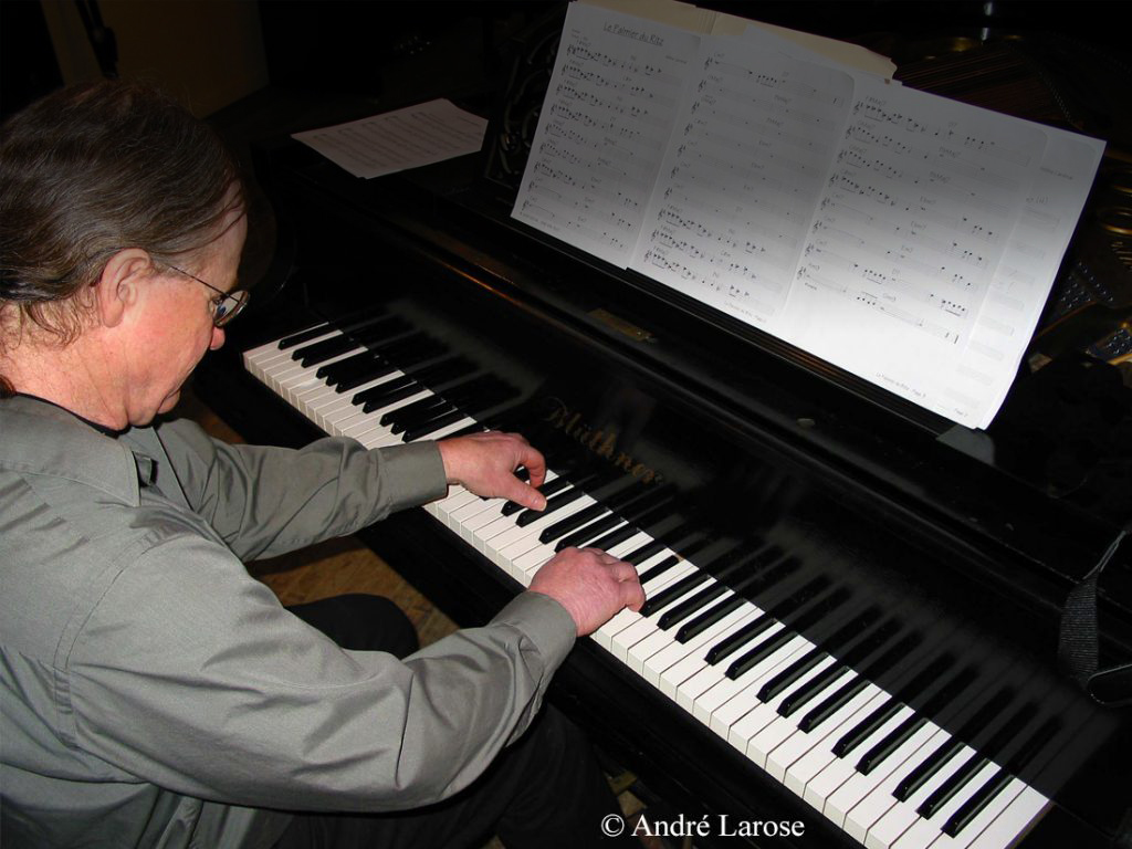 His first contact with music was on the accordion and then he pursues his musical studies in piano at age 14. In the early 1970s, he took part in the recording of the first two albums of Plume Latraverse: the first, TRINITERRE, on which he plays the piano, the accordion and the Hammond B3 organ and the second, PLUME POU DIGNE on which he does the backups vocals on the famous song "Quel Calvaire!" which has earned him the nickname of choir. He also puts his percussionist talents to profit for the other tracks of this album.